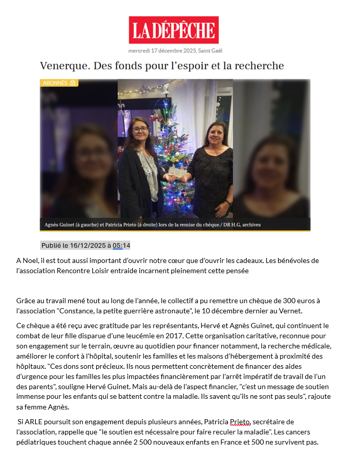 Publié le 06 decembre 2019 La Depeche Le Vernet